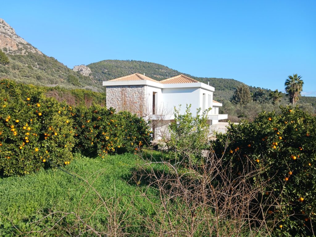 Η μονοκατοικία διαθέτει δικό της οικόπεδο εμβαδού 1.975 m² που περιλαμβάνει εσπεριδοειδή δέντρα και μεγαλο διαμορφωμένο χώρο για θέση πάρκινγκ.